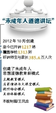 据介绍,“未成年人道德讲坛”以当前未成年人思想道德现状中普遍存在的突出问题为导向,以切实解决未成年人思想道德痛点、难点问题为目的,近5年来着重就未成年人“理想缺失”“责任缺失”“感恩缺失”“诚信缺失”“文明礼仪缺失”和“抵御毒品侵袭能力薄弱”等问题进行了研究攻坚与成果应用实践,成果明显。