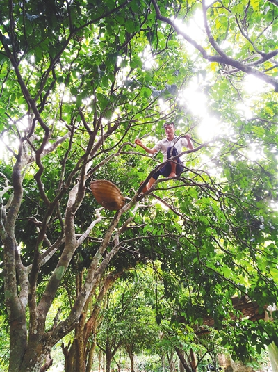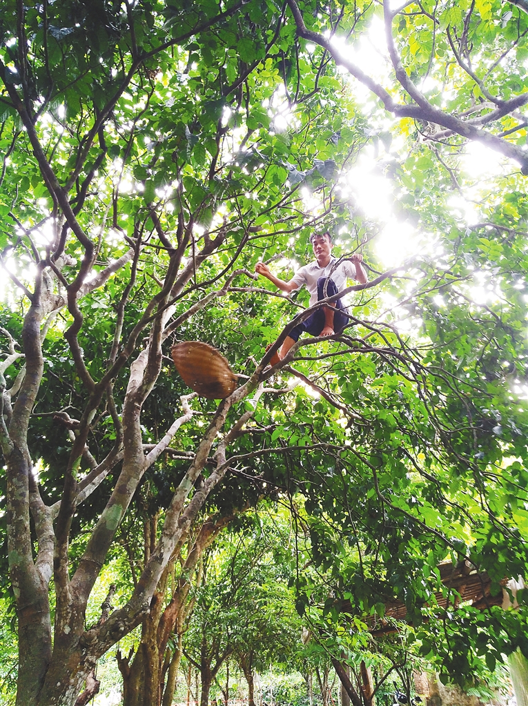 轻盈地穿梭在黄皮树的枝头,是当地很多果农的特技,他们口中的“上天果”也给他们带来了更多的生财之道。眼看儋州的黄皮作为一种传统的特色水果,越来越受到消费者的欢迎,54岁的符在明萌生了更多的想法:从原本简单的管理生产慢慢的衍生到服务业,实现从第一产业到第三产业的跨越。