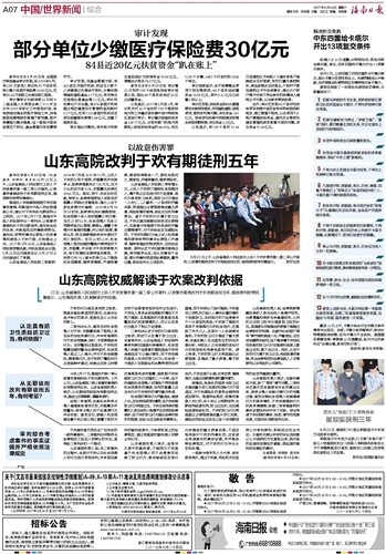 今年2月17日,聊城市中院一审以故意伤害罪判处于欢无期徒刑。6月23日,山东省高院二审以故意伤害罪判处有期徒刑五年。山东省高院负责人表示,从无期徒刑到改判有期徒刑五年,是经过反复斟酌、慎重考虑的。