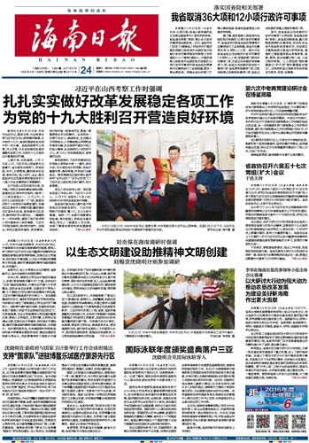 海南日报 头版 001 2017-06-241 2017年06月24日 星期六