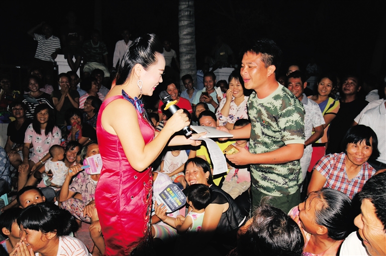 6月22日晚,昌江黎族自治县十月田镇保平村委会文化广场上人头攒动。当晚8时,热闹欢快的少数民族舞蹈《盛世欢歌》拉开了省第七次党代会精神文艺轻骑兵巡回宣讲演出活动的序幕。小品、快板、歌曲、民谣等形式多样、趣味生动的表演引得观众鼓掌称赞。