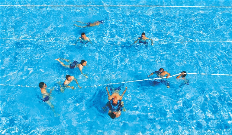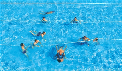 6月25日,海口市假日海滩亲水乐园,海南“预防溺水”公益大救援活动举行,近20名志愿者学习专业的溺水救援技能。本报记者 张茂 摄