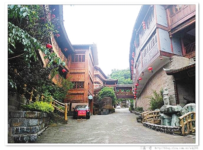 沿着永安门,踩着几百年的时光,我一步一步来到寨子里。只见高高低低的吊脚楼,沿山势铺排,层层叠叠,逐级向上,错落有致,格外壮观。寨子里古木苍翠,怪石林立,殿宇峥嵘,古屋、精舍、涧流,构成一幅绚丽多彩的画卷,整个感觉让人觉得很舒服。