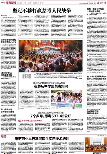 | 海南日报 关注“6·26”国际禁毒日 005 2017-06-271 2017年06月27日 星期二 |