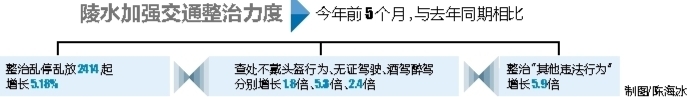 今年以来,陵水公安交警部门实施了多起专项整治行动,厉行查处各类交通违法行为。据统计,今年前5个月查处交通违法行为数量达2.4万起,比去年同期的6400余起增长2.7倍。