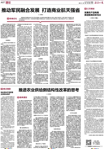 海南具有发展商业航天的天然优良基因:低纬度的地理位置优势,有利于降低航天发射成本,提高航天发射成功率;毗邻大海的开阔空间,有利于航天发射残骸的安全剥落,这是文昌作为我国四大航天发射基地独有的优势。军民融合是国家重大战略选择,商业航天是航天产业未来发展的必然趋势。积极探索军民融合发展商业航天,推动航天技术的商业转化和航天事业的产业化,海南具有先导示范作用。