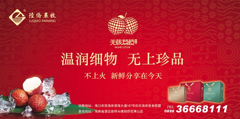 海南陆侨农牧开发有限公司是国内无核荔枝研制种植的龙头企业,是海南陆侨集团旗下明星产业子公司。年产量居国内前茅,无论是销售渠道、价格体系、营销理念、经营规模都属先进地位,年销售总额领居全国行业。产品除供应北京、上海等一线城市的大型超市外,部分产品已远销到新加坡、韩国、荷兰等国家,是当之无愧的国内黄金品牌。