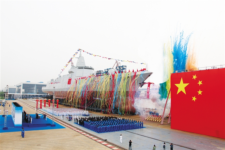 6月28日,海军新型驱逐舰首舰下水仪式在上海江南造船(集团)有限责任公司举行。 该型舰是我国完全自主研制的新型万吨级驱逐舰。该舰下水标志着我国驱逐舰发展迈上了一个新的台阶,对于完善海军装备体系结构、建设强大的现代化海军、实现中国梦强军梦具有重要意义。