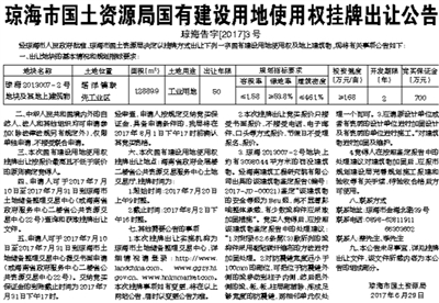 琼海市国土资源局国有建设用地使用权挂牌出让公告