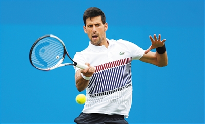 6月28日,在英国伊斯特本网球公开赛男单第二轮比赛中,塞尔维亚选手德约科维奇以2:0战胜加拿大选手波斯皮希尔,晋级八强。图为小德在比赛中回球。 新华社发