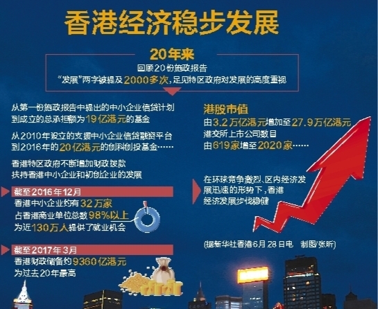 从1997年至2017年,香港特别行政区历任行政长官共发表了20份施政报告,累计近45万字。借助人工智能程序对每一份施政报告进行统计和分析发现,总体上说,“发展”和“经济”是行政长官施政报告中出现频率最高的词语,遥遥领先其他词汇。