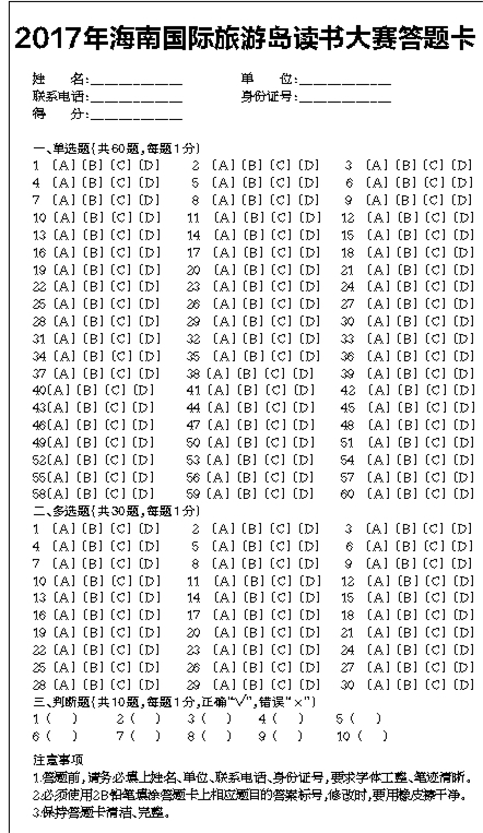 2.纸质答题题目及答题卡详见海南日报6月30日第B05版。纸质答题卡请于8月31日前(以邮戳时间为准)邮寄到海南凤凰新华出版发行有限责任公司潘家浩收,邮政编码:570206。