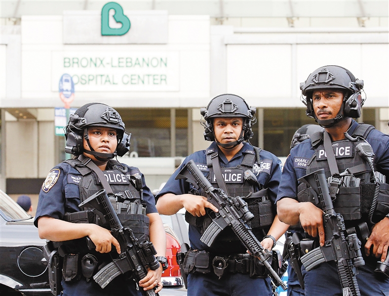 纽约警察局局长詹姆斯·奥尼尔在新闻发布会上说,身穿白大褂的枪手持突击步枪在医院16楼、17楼开火,导致一名医生当场死亡,另有6人受伤,其中5人伤势严重。