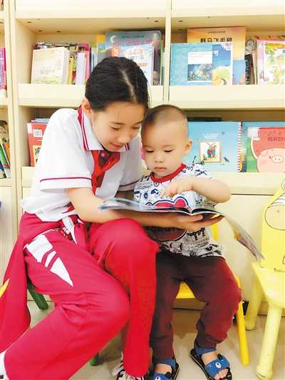 海口耀江花园小区有一个好去处,那里是孩子们的阅读天堂,一间不大的客厅装满了儿童绘本等读物,有些孩子一边吃着奶,一边依偎在母亲的怀抱里看画册,享受当下的静谧阅读时光。