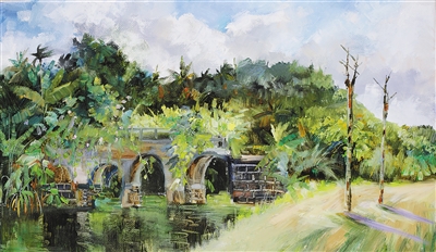 《红色母瑞山红军战斗遗址——红军桥》(油画)