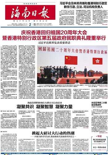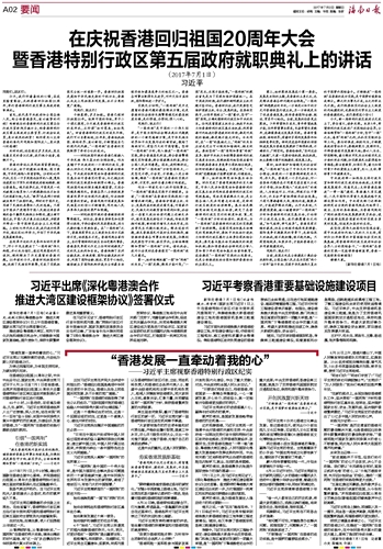 在庆祝香港回归祖国20周年大会 暨香港特别行政区第五届政府就职典礼上的讲话