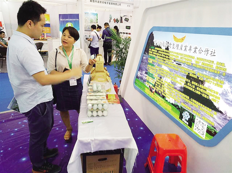 “这个鸡蛋为什么是绿色的,和正常的鸡蛋有什么区别吗?”不断有人聚集在绿壳鸡蛋的展厅前,好奇地观察这些奇特的鸡蛋。绿壳鸡蛋的销售经理张珊梅耐心地解释:“这是儋州的绿壳鸡蛋,我们这些鸡每天吃的是林子里的虫子,和农村散养的鸡一样,这样的鸡蛋煮熟后,颜色很好,营养价值也高。”在展览会最后一天的销售环节,张珊梅带去的1800盒绿壳鸡蛋很快被抢购一空,很多没有买到的消费者只好留下张珊梅的电话进行电话订购。