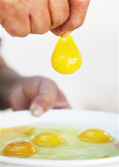据了解,绿壳鸡蛋是“儋凤”牌乌骨鸡所产的蛋,从外形上看每个鸡蛋比普通的鸡蛋要小很多,而且每个鸡蛋打开后能够直接用手把蛋黄抓起来而不破。张珊梅自豪地说,他们这里的黑羽乌骨鸡都是原种的,可以说在儋州乃至全省很难找到原种的乌骨鸡,这里的乌骨鸡羽毛、肉、鸡冠、内脏、骨等部位都是乌黑的,因此也叫“五黑”鸡,这样的鸡生出的蛋都是绿壳的,没有一个黄壳的。