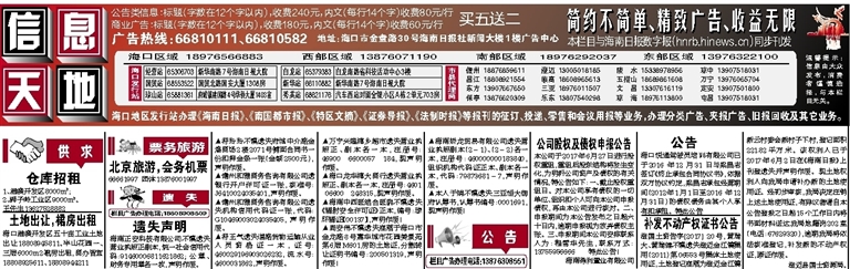 欢迎在海南日报 南国都市报刊登广告
