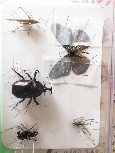 在松鼠学堂90平方米左右的工作室里,书架上摆放着很多关于自然教育的书,还有许多叫不出名字的昆虫标本和植物标本,被高高视若珍宝。这些都是她在推广自然教育活动时留下的“礼物”。