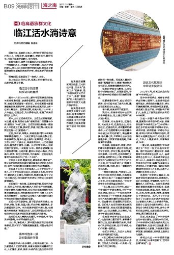“海南环境优美,气候宜人,且诗词文化深有历史渊源,尤其是临高,明代出现了一位著名的爱国诗人王佐,对后世影响深远。”中华诗词学会会长郑欣淼这样评价。