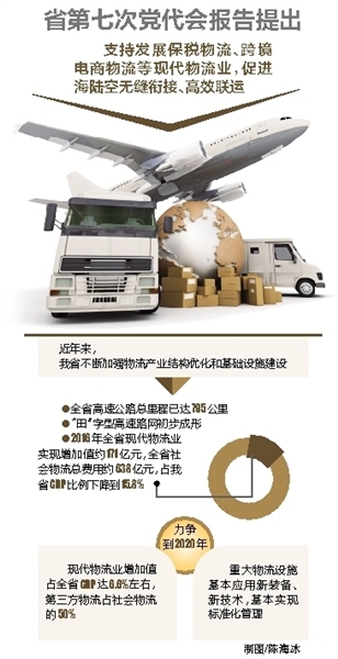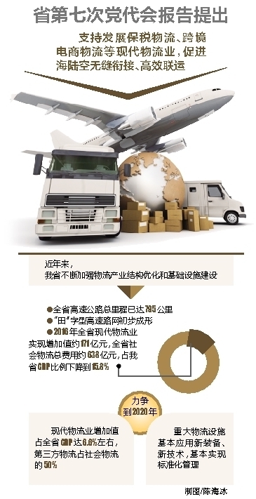 省交通运输厅负责人介绍,近年来,我省不断加强物流产业结构优化和基础设施建设,全省高速公路总里程已达795公里,“田”字型高速路网初步成形。2016年全省现代物流业实现增加值约171亿元,全省社会物流总费用约638亿元,占我省GDP比例下降到15.8%。