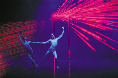 7月4日,德国多特蒙德芭蕾舞团在北京天桥剧场演出芭蕾舞剧《浮士德II》,图为演员露西娅·拉卡拉(左)、马龙·迪诺在剧中表演。