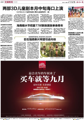 海南日报 文娱新闻综合 012 2017-07-101 2017年07月10日 星期一