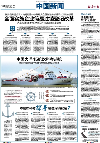 中国大洋45航次科考起航
