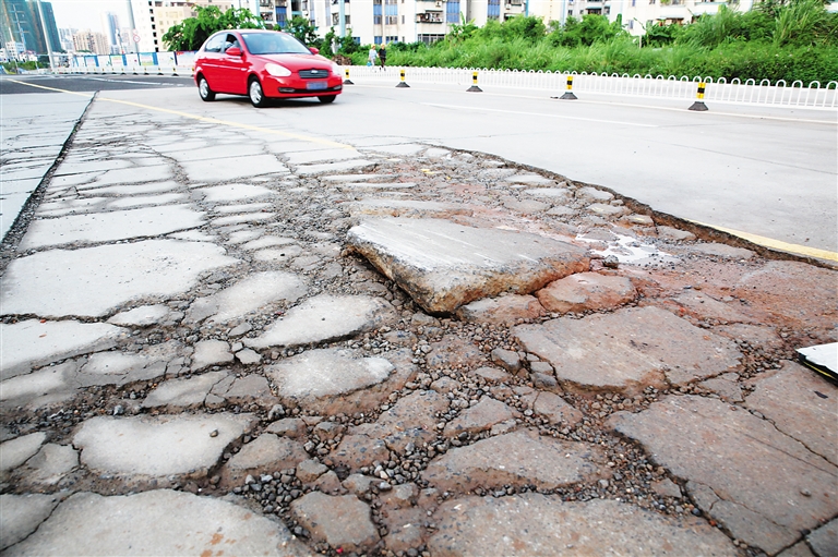 据了解,国兴大道属于海口市交通要道,随着环湖路、道客路等路网的建成通车,已大大缓解了大英山片区路网的交通压力。目前,唯独这小段路仍无人管,而这里是红城湖路通往国兴大道上海秀快速干道的必经之路。记者现场发现,除了轿车路过时容易刮底盘,骑车经过的人稍不留神还会栽跟头。本报记者 张茂 摄