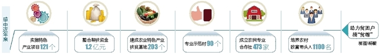 近年来,琼中采取政策激励、示范带动、技术指导等一系列措施,实施特色产业项目121个,整合帮扶资金1.2亿元,建成农业特色产业扶贫基地203个、专业示范村90个,成立农民专业合作社473家、培养农村致富带头人1100名,助力贫困户摘“贫帽”。