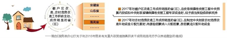 琼中住建局副局长郑杰文说,2016年,我省危房改造政策调整,重点向建档立卡贫困户、低保户、五保户、贫困残疾人四类对象倾斜。琼中县政府也加大对贫困村庄的财政扶持力度,把省里下达的1800户危房改造指标扩大到5000户,最高补助标准提高至每户6万元。同时,琼中以危房改造为抓手,推进村庄规划、农房报建、绿化和污水处理等基础设施建设,建设富美乡村。