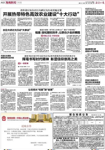 海南日报 海南新闻时政 002 2017-07-141 2017年07月14日 星期五