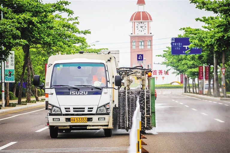 和陈洪平有同样感受的,还有海口市京环城市环境服务有限公司的环卫工郑春艳。负责琼山区府城街道环卫工作的她给记者举了个例子:每年元宵节时,府城都会举行“换花节”,场面格外热闹,然而庞大的人流量却给环境带来了负担。活动结束后,纸屑、塑料瓶等垃圾被扔得到处都是。“这要放在过去,要好几天才能清扫干净,但这两年,人流刚散,京环公司的作业机械就开到了现场,‘捡、冲、吸、扫、洗’同步进行,仅仅90分钟,遍地的垃圾就不见了。”