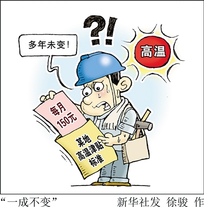此外,记者调查了解到,一些地区的高温津贴标准多年不变,未根据当地的经济发展及天气情况进行调整。