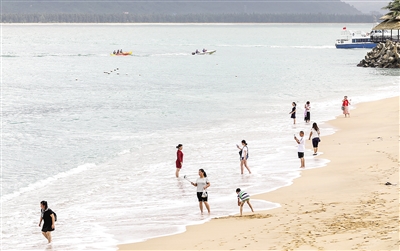 7月17日,游客在陵水分界洲岛旅游区游玩。