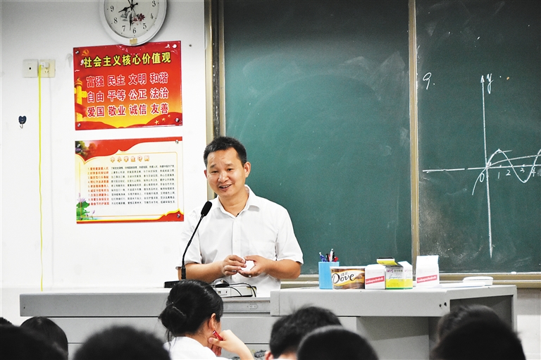 7月16日下午,在海南中学屈韬的办公室里,办公桌上放着一本《如何做最好的班主任》,在桌子左前方,大大的班级合影照片稳稳地站在那里,又一届学生毕业了,看着班级合影,屈韬眼睛些许湿润。