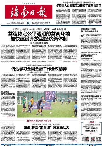 海南日报 头版 001 2017-07-181 2017年07月18日 星期二