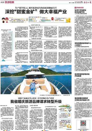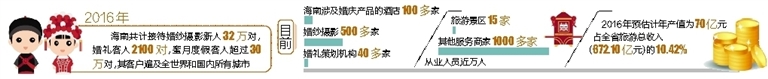 “韩国济州岛每年吸引众多新人前往度蜜月,当地形成的完整婚庆产业链及成熟的婚庆文化,让该岛蜜月岛的形象深入人心。”省社科联副主席陈耀则认为,多年以来,海南婚庆旅游仍处于自发行为,在旅游行业内并未形成专门的婚庆旅游业态。