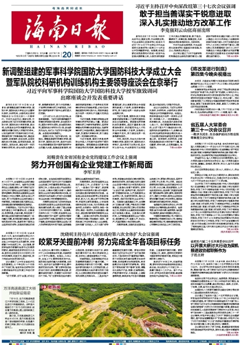 海南日报 头版 001 2017-07-201 2017年07月20日 星期四