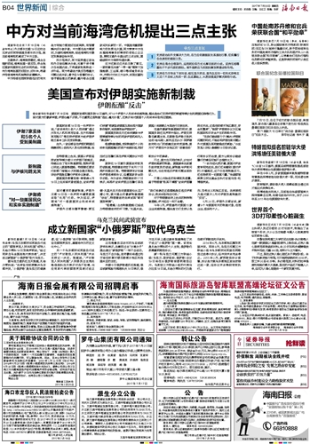 海南日报 世界新闻综合 012 2017-07-201 2017年07月20日 星期四