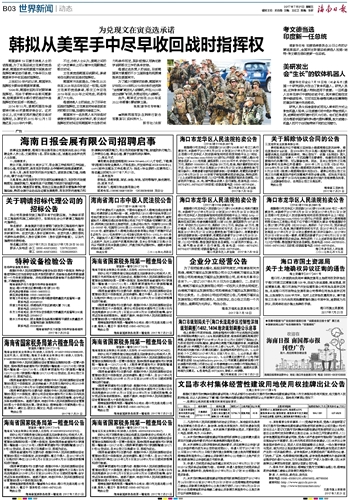 韩国军方一名负责人本月早些时候接受韩联社采访时表示,移交战时指挥权的时间应视韩国军方自身的实力和条件而定,现阶段难以用确切数字说明移交工作的具体安排。