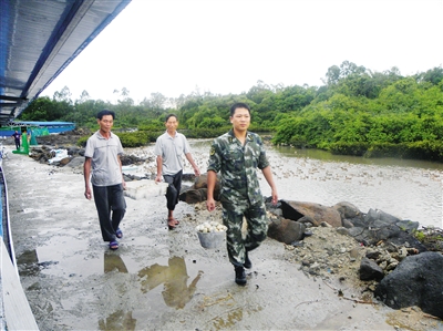 “欧宅村村口的河滩是淡水和海水的交汇处,遍布红树林,水草丰满,非常适合养殖跑海鸭。”驻欧宅村第一书记、松林边防派出所干警李汉朝介绍,发现这个得天独厚的自然条件后,他便到附近的跑海鸭基地进行了实地调研,根据实际情况撰写了跑海鸭养殖的可行性报告,得到了支队领导的大力支持,支队党委随后与光村镇政府进行了协调,经过分析、考察和讨论后,双方决定共同出资100多万元建设“跑海鸭”生态养殖基地。