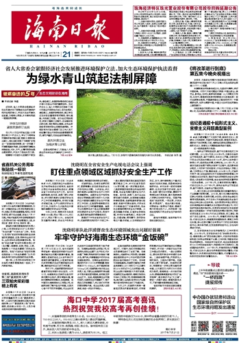 海南日报 头版 001 2017-07-211 2017年07月21日 星期五