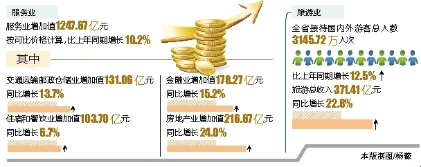 今年上半年,我省产业结构优化调整,服务业增加值1247.67亿元,按可比价格计算,比上年同期增长10.2%。