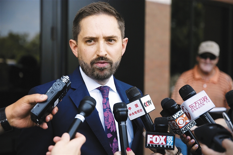 7月20日,涉嫌绑架中国访问学者章莹颖的被告布伦特·克里斯滕森的辩护律师安东尼·布鲁诺接受记者采访。 当日下午,美国伊利诺伊州中部地区联邦法院对布伦特·克里斯滕森进行提审。克里斯滕森在法庭上首次开口,但拒绝认罪。 新华社发