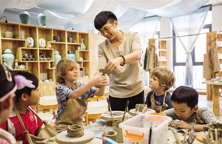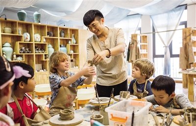短短40分钟,这群西方“小匠人”捏塑作品基本成型,独特的中国传统陶艺文化,令孩子们收获了一次难忘的体验。“注重学习技能培训的同时,我们也在努力营造良好的文化氛围,通过绘制仿古壁画、DIY中国风摆件、门窗装饰等方式,展示中国味道,让文化建设融入校园建设之中。”三亚外国语学校陶艺课老师郑婷说。