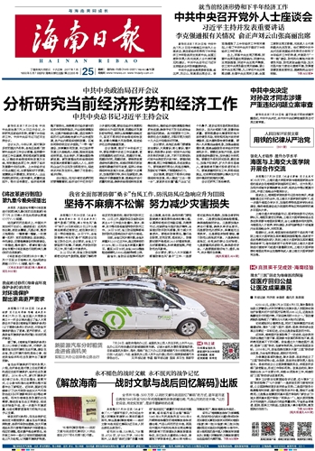 海南日报 头版 001 2017-07-251 2017年07月25日 星期二