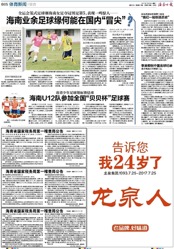 海南日报 体育新闻综合 013 2017-07-251 2017年07月25日 星期二