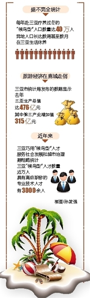旅居社会带来的机遇与挑战引人深思,一系列创新探索在鹿城相继实施。据不完全统计,三亚“候鸟型”人才数量近万人,具有高级职称的专业技术人才有3000余人。